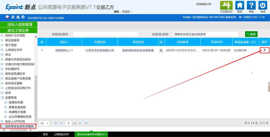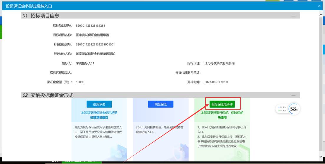 投标单位开具好保函或其他投标保证凭证后可点击【投标保证电子件】进行上传