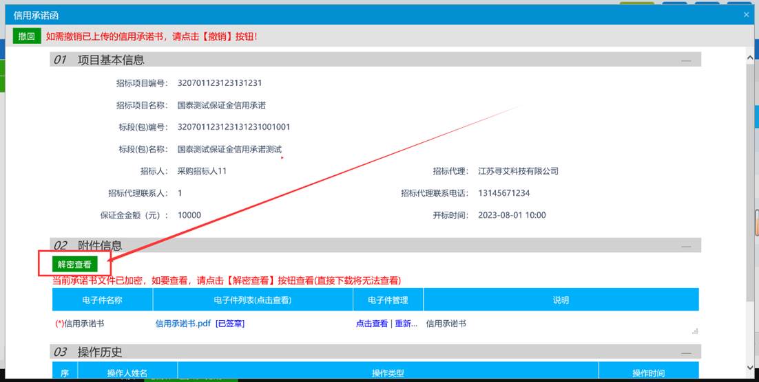 成功提交后可点击解密查看进行下载查看