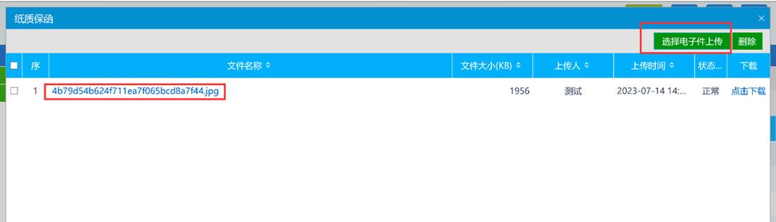 点击【电子件管理】---【选择电子件上传】,可以上传已经办理完成的投标保证电子件图片格式或者pdf格式,且只能上传一个文件。