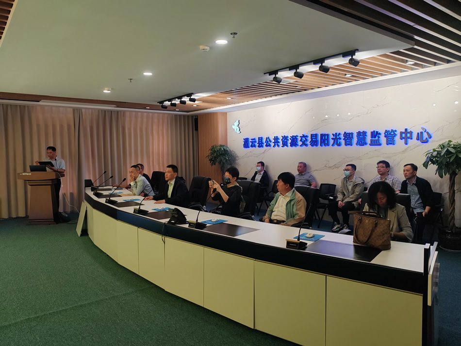 调研活动中,与会人员首先对灌云县公共资源交易中心软硬件设施和智慧阳光监管系统进行现场观摩学习,并观看了宣传短片和监管系统演示操作。