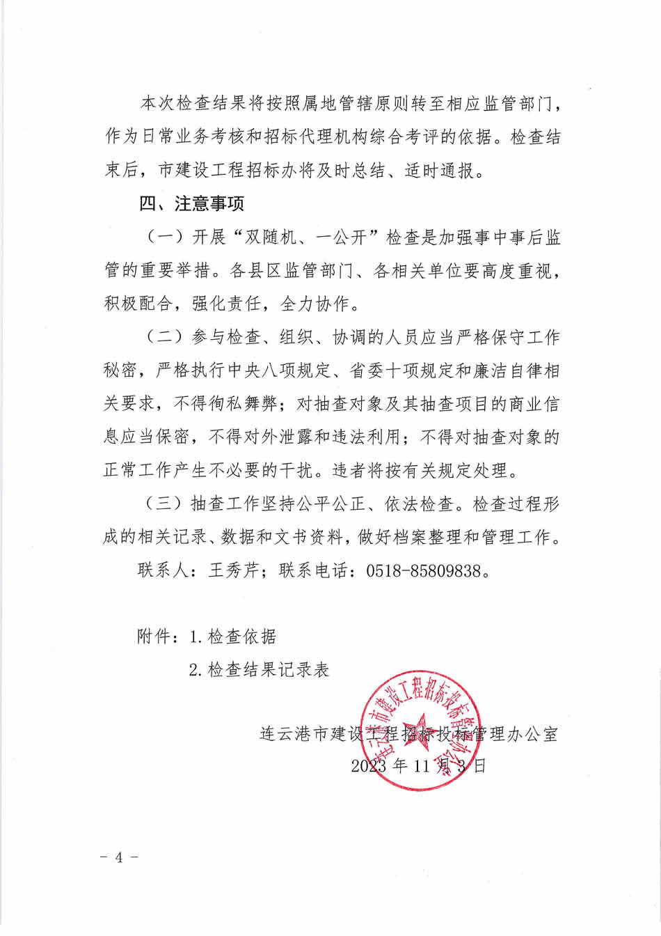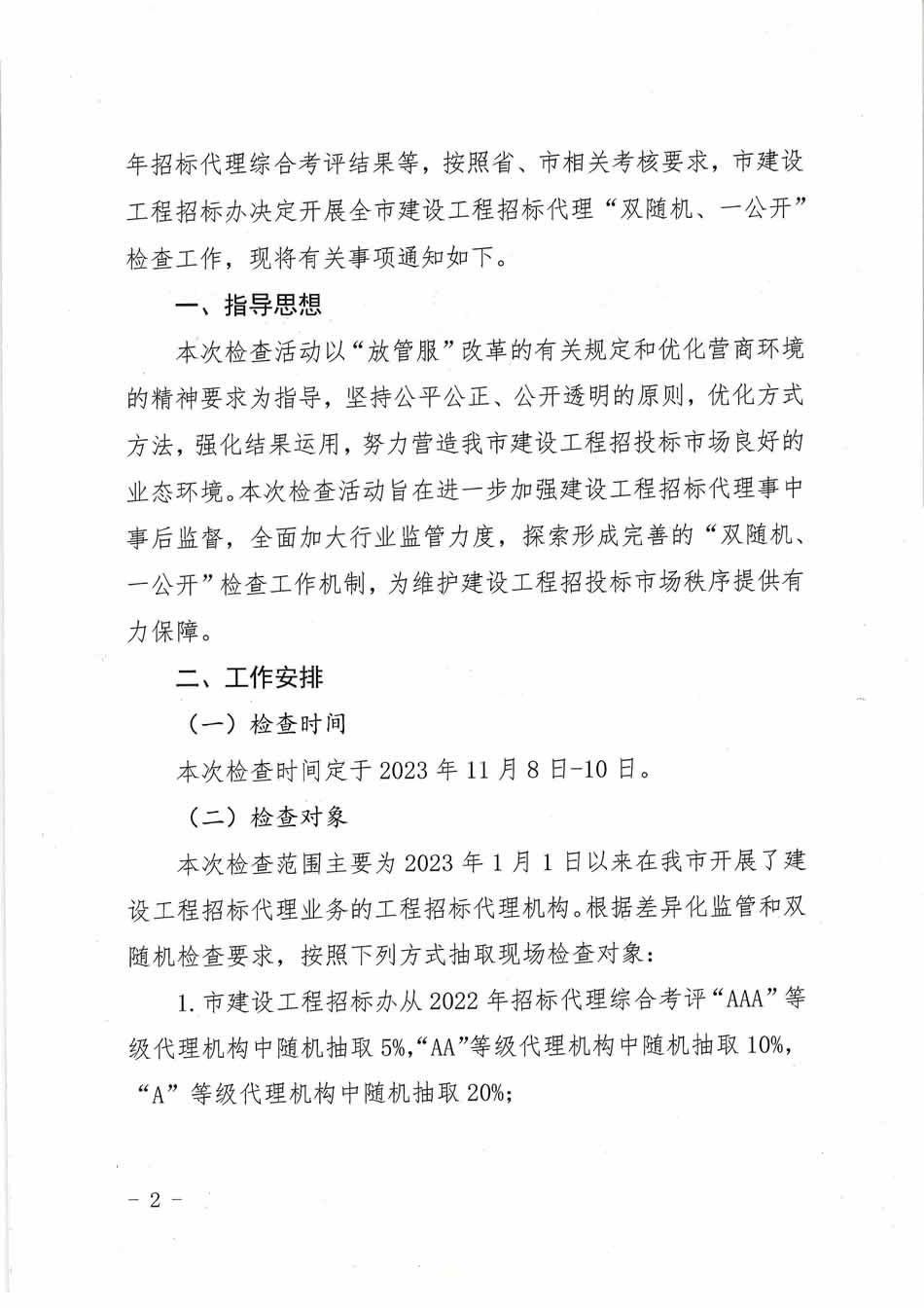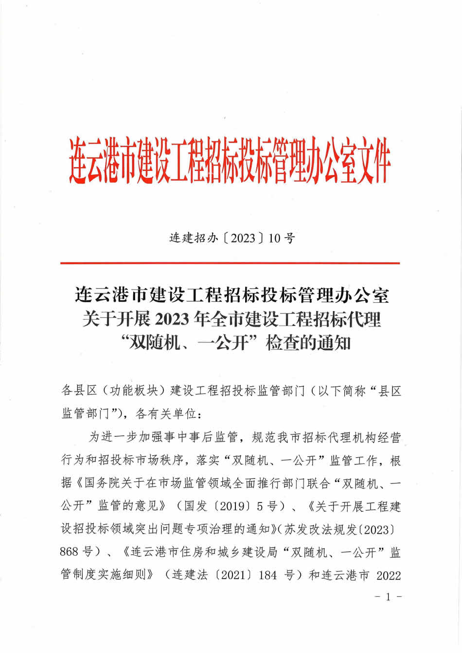 连云港市建设工程招标投标管理办公室关于开展2023年全市建设工程招标代理“双随机、一公开”检查的通知.pdf