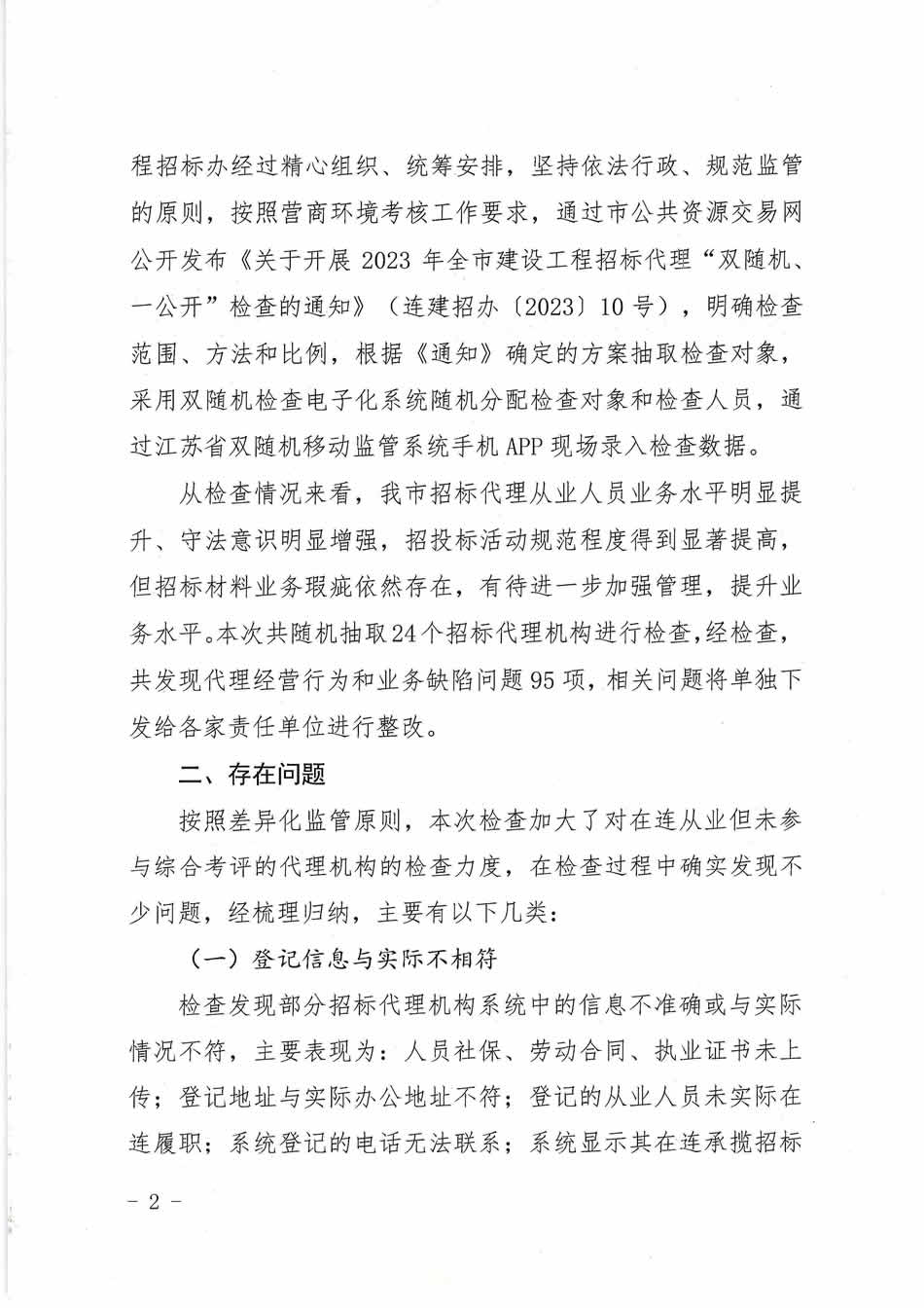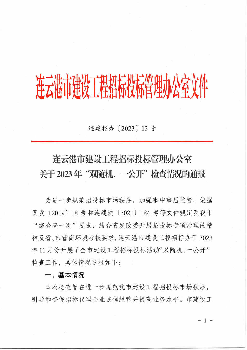连云港市建设工程招标投标管理办公室关于2023年“双随机、一公开”检查情况的通报.pdf