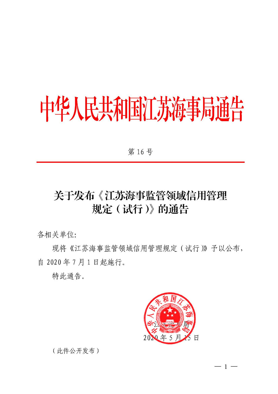 关于发布《江苏海事监管领域信用管理规定(试行)》的通告.pdf