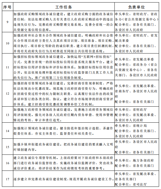 附件:《省政府关于加强政务诚信建设的实施意见》重点任务分工表