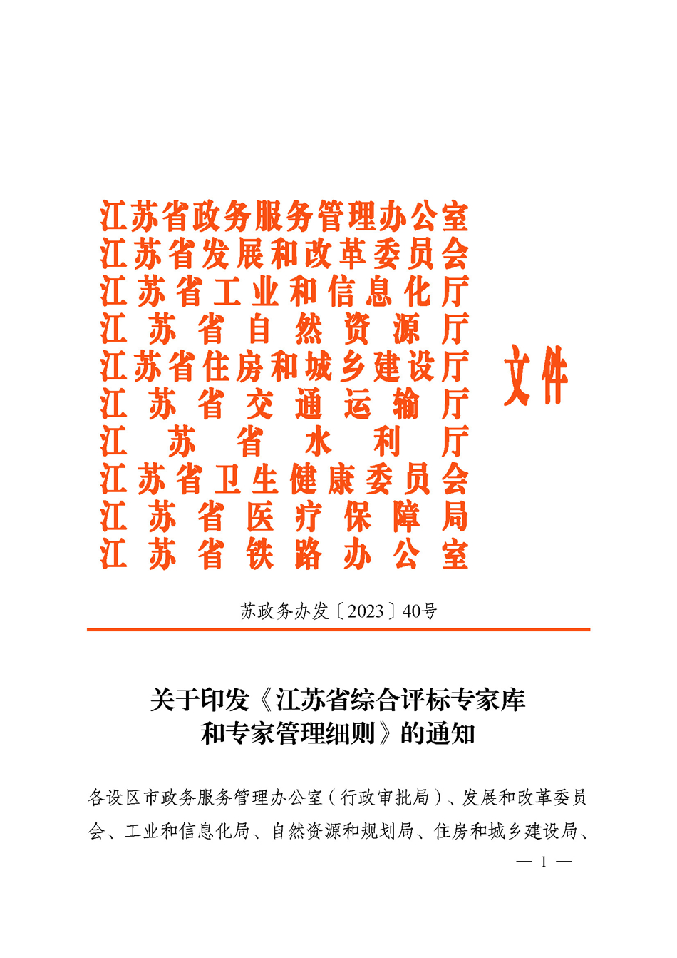 关于印发《江苏省综合评标专家库和专家管理细则》的通知(苏政务办发〔2023〕40号).pdf