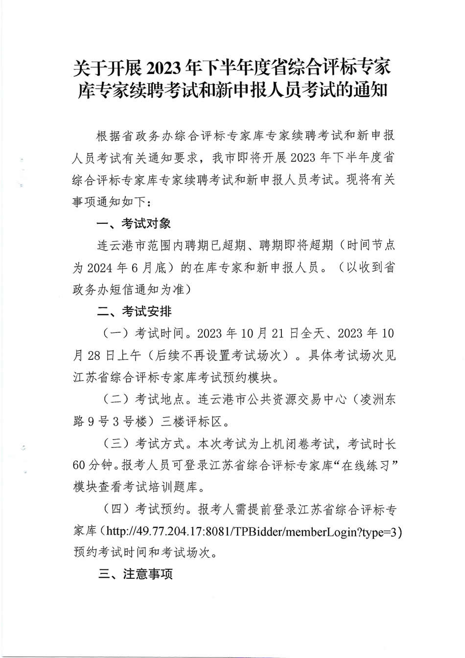 关于开展2023年下半年度省综合评标专家库专家续聘考试和新申报人员考试的通知.pdf